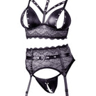 3-piece lace set with matte look material and studs.