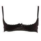 Underwired red half cup bra with delicate embroidery at the cups. Stretch satin on the sides and in the back. Straps adjustable, hook closure in the back. Bra Only.