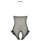 The Cottelli Sheer Crotchless Body is a seductive lingerie piece that can also be worn during sex, making it an exciting addition to your bedroom repertoire. This transparent body features a halterneck design that is closed at the front with a clasp, creating a striking look that accentuates your curves. The open front of the body is held together by a wide lace band in the waist area, adding a touch of intrigue to the outfit.