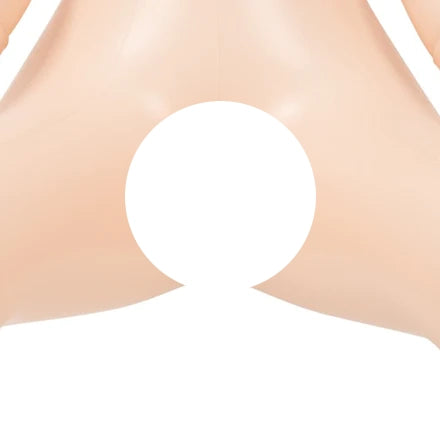 Sitting 132 cm tall. With shaped hands and feet. The removable vagina insert, 13 cm long with vagina and anus opening, and the nubby, stretchable pleasure channels vibrate if desired through the enclosed vibrating egg, 5.5 cm long, 2.5 cm wide. PVC. Including repair kit, foot pump, and care powder.