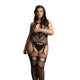 High neck suspender bodystocking with sexy keyhole. This bodystocking has a contract opaque pattern onto the fishnet. Attached stockings with a sexy keyhole opening on the legs and back seam. This bodystocking has a lot of stretch and can be worn from size 2XL to 5XL. UK Size 14-20