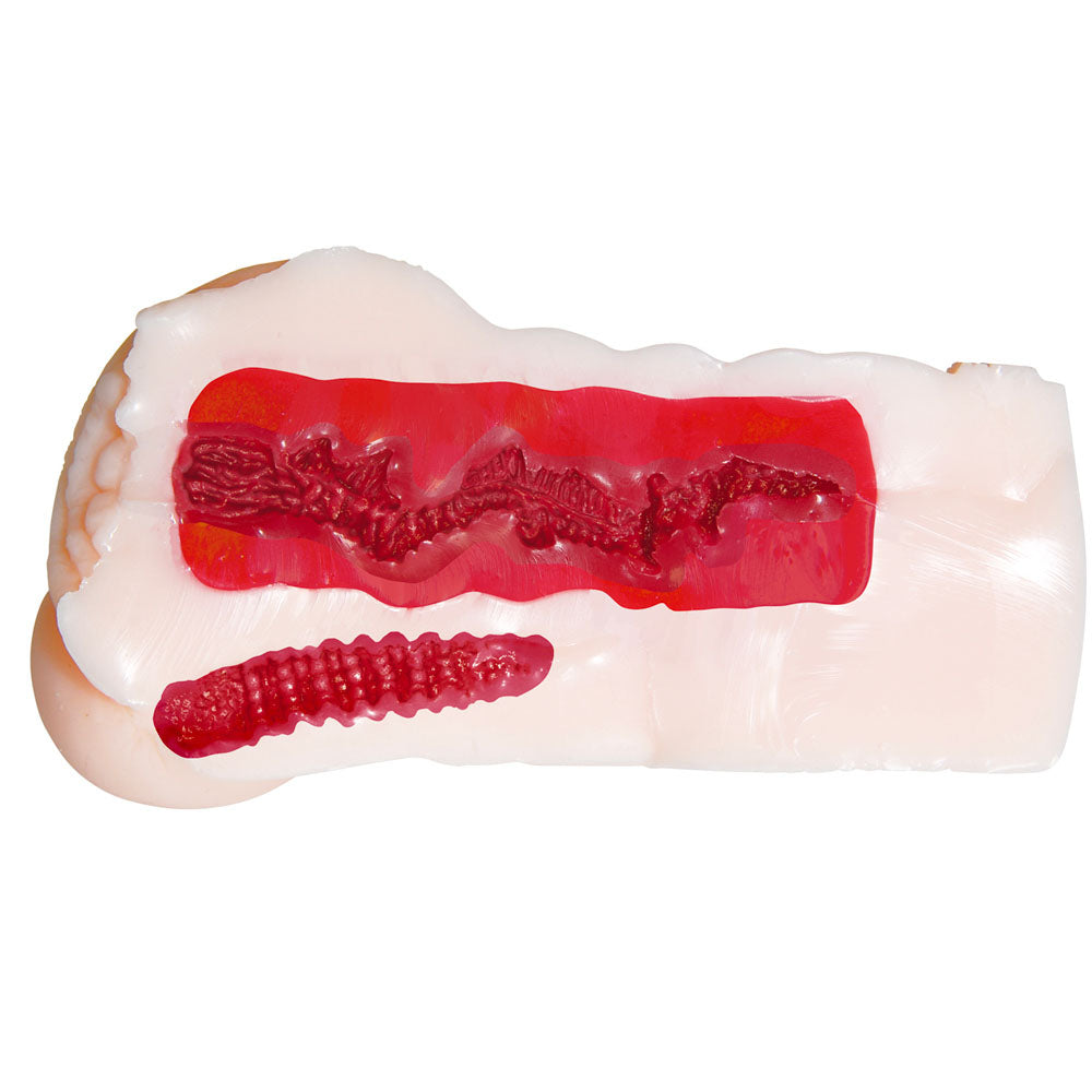 A tempting pink inner wall filled with detailed lumps, bumps wrapped in a tight and moist tunnel to give you the most intense pleasure you will ever get, along with a vacuum zone for intense suction at the end, feel the unforgettable embrace of Anri's K cup body! When you are done with her sweetest spot, move on to the anal, an even tighter zone with a completely different kind of orgasm await. This 630 g baby with its remarkable design will suck you dry.