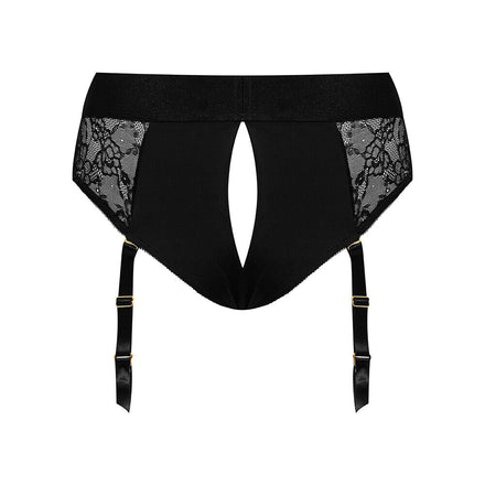 This lace harness will seduce you with its elegance and comfort with its second-skin design. It also has an elastic waistband and adjustable garter belts to maximise your comfort.